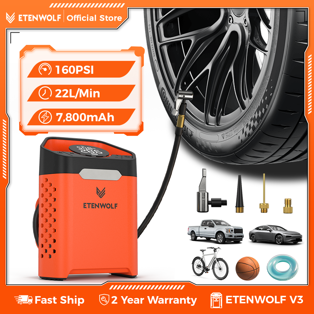 ETENWOLF ZEPHYR V3 Portable Car Compressor 160 PSI 100% Duty Cycle Car Tire Inflator 7800mAh For Cars Motorcycles Bicycles Balls