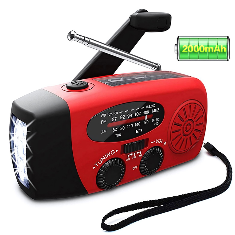 Сонячний ручний кривошипний кемпінговий ліхтар з AM/FM-радіо на відкритому повітрі 2000 м Аг USB зарядний багатофункціональний ручний динамівський світлодіодний ліхтарик