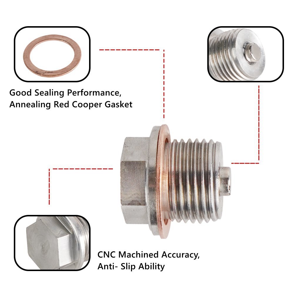 New Stainless Steel Magnetic Oil Drain Plug M12x1.25 M14x1.5 M16x1.5 M18x1.5 Oil Drain Sump Nut Auto Parts Silver OS-1003-M12