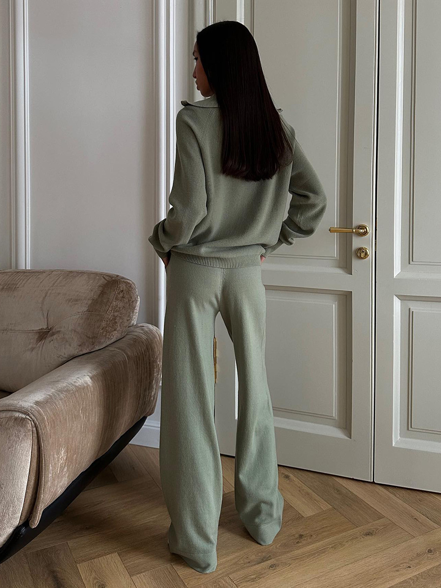 Blubelle Women's New Autumn Winter Knit Zip Up Cardigan Wide Leg Pants Set Hooded Soft Loose Fit Elastic Waist Fashion Sets