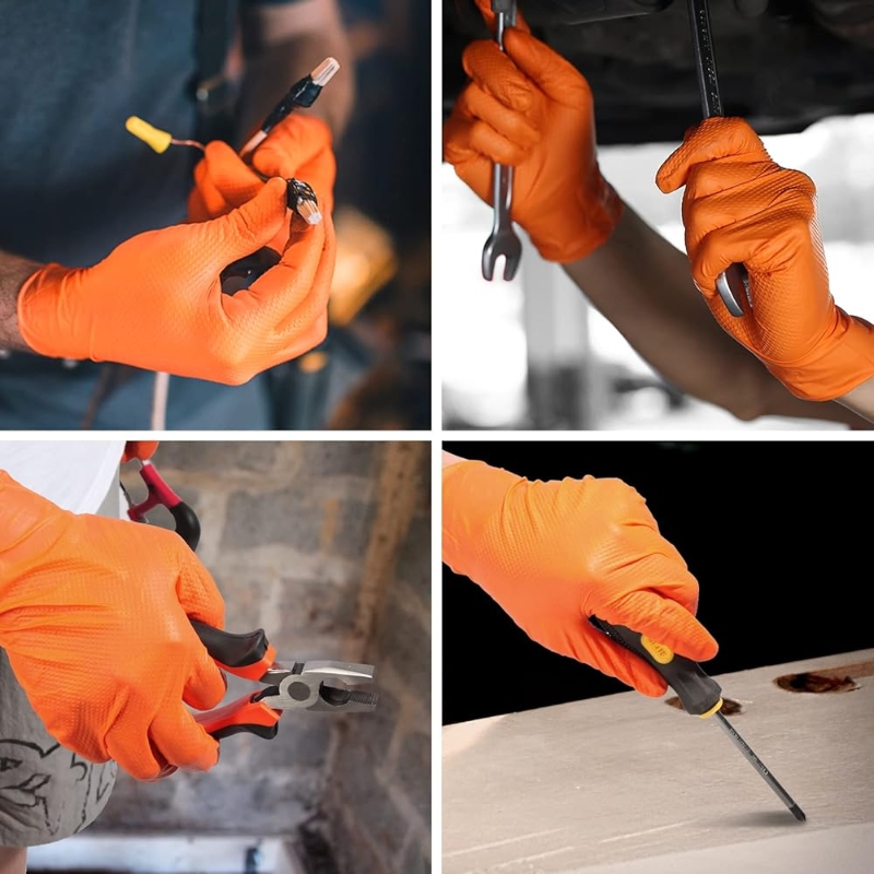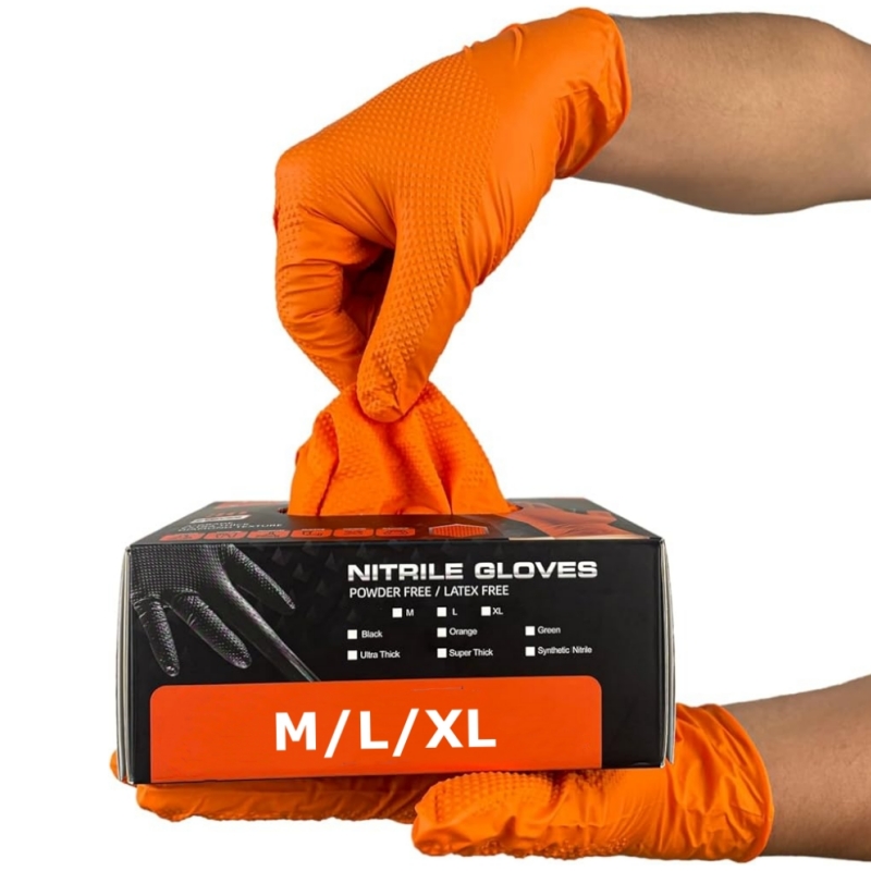8Mil Thick Orange Nitrile Gloves Disposable Heavy Duty Industrial Gloves with 3D Diamond Textured Grip Mechanic Auto Work Gloves