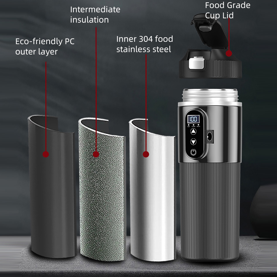 12V/24V 500ML Electric Heating Cup Kettle 304Stainless Steel Water Heater Bottle Auto Shut Off Fast Boiling Cup For Travel Car