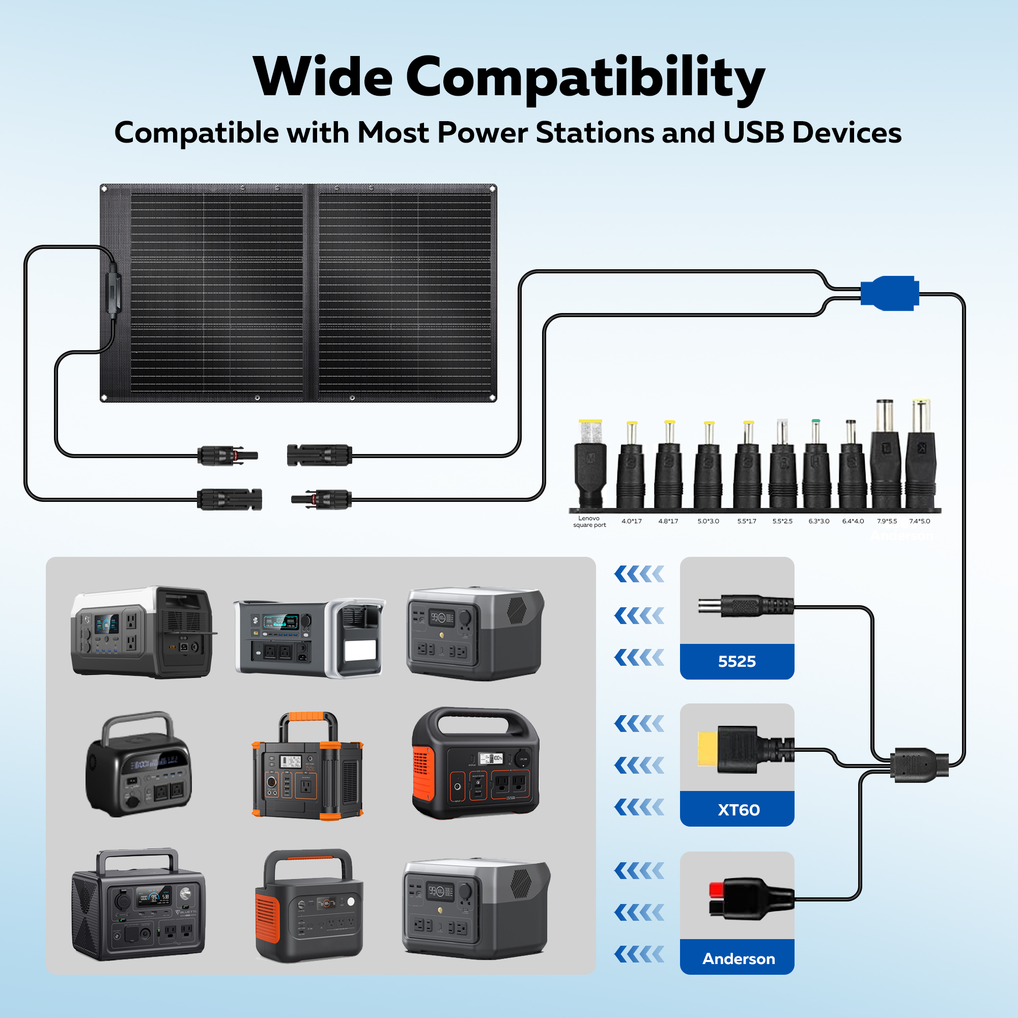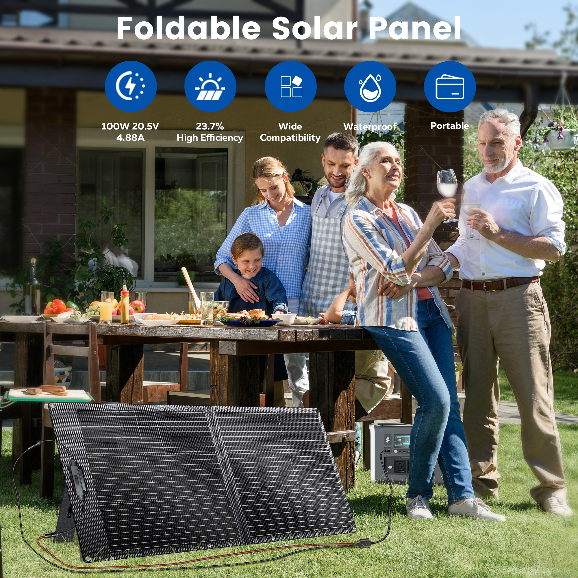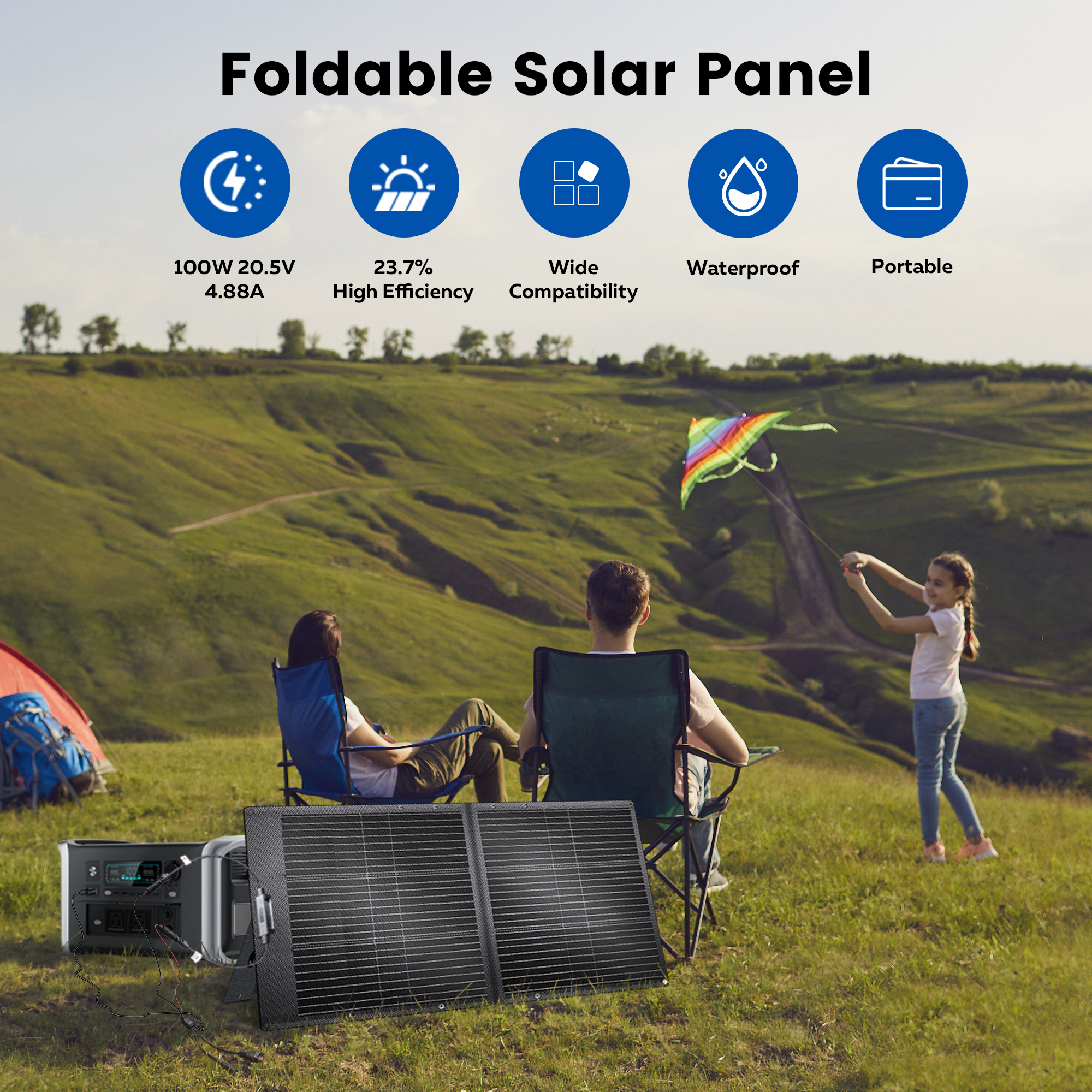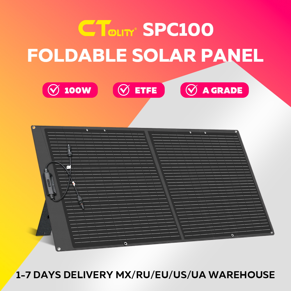 CTOLITY SPC100 A Grade ETFE 100W Foldable Solar Panel Efficiency 23% High 20.5V Solar Generator IP68 Waterproof 18AWG 1M RV Camp