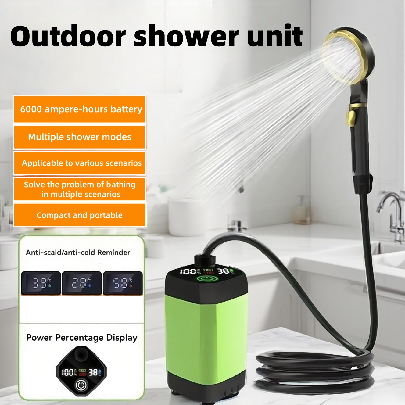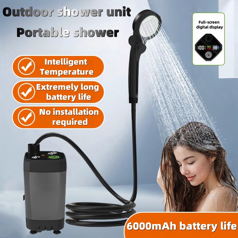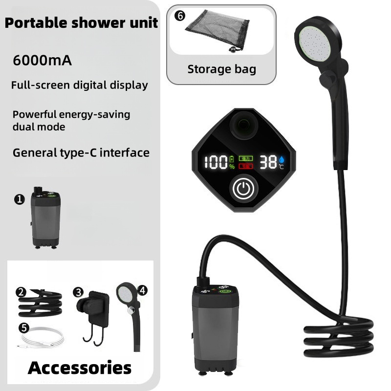 Portable Camping Shower 6000mAh Rechargeable Electric Pump with LED Screen Handheld Outdoor Shower for Camping Hiking Travel