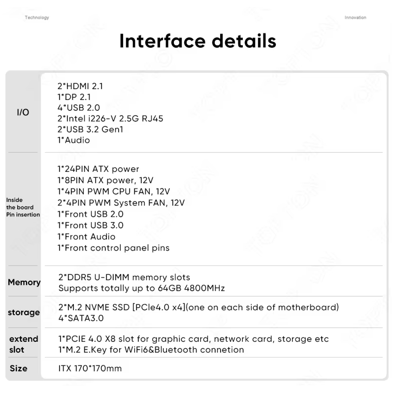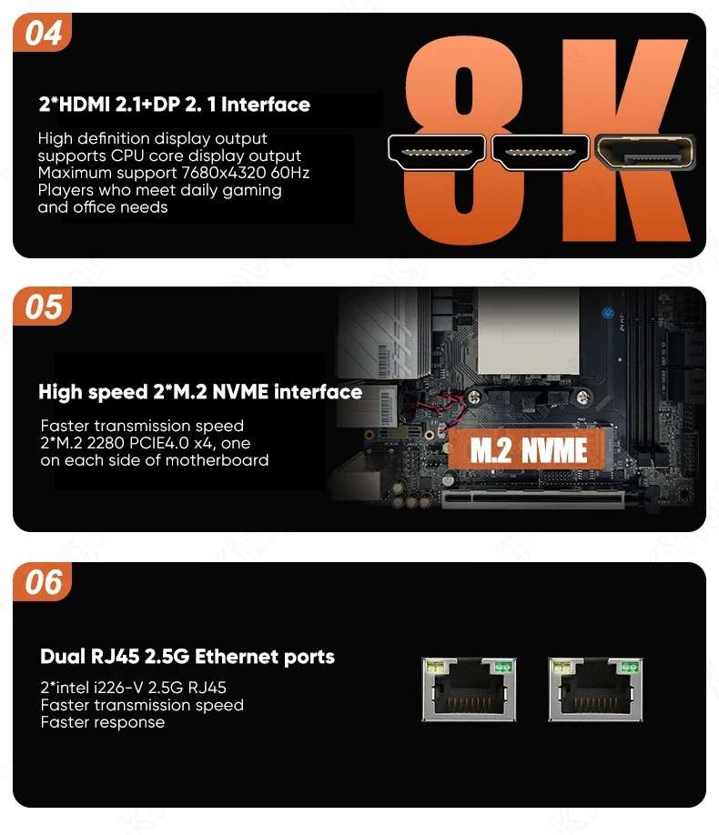 AMD Ryzen 9 7940HS/8945HS Mini-ITX Motherboard | 2×DDR5 64GB | 2×NVMe PCIe4.0+4×SATA3 Dual 2.5G LAN |Firewall/NAS/Gaming 17×17cm