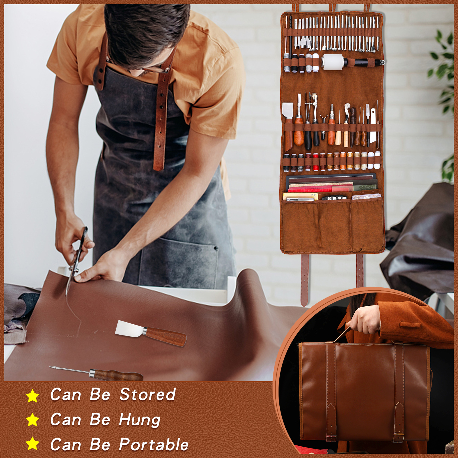 Leather Working Craft Tools Kit with Custom Handbag Cutting Mats Engraving Punching Sewing Stamping Sanding Tools for Handicraft