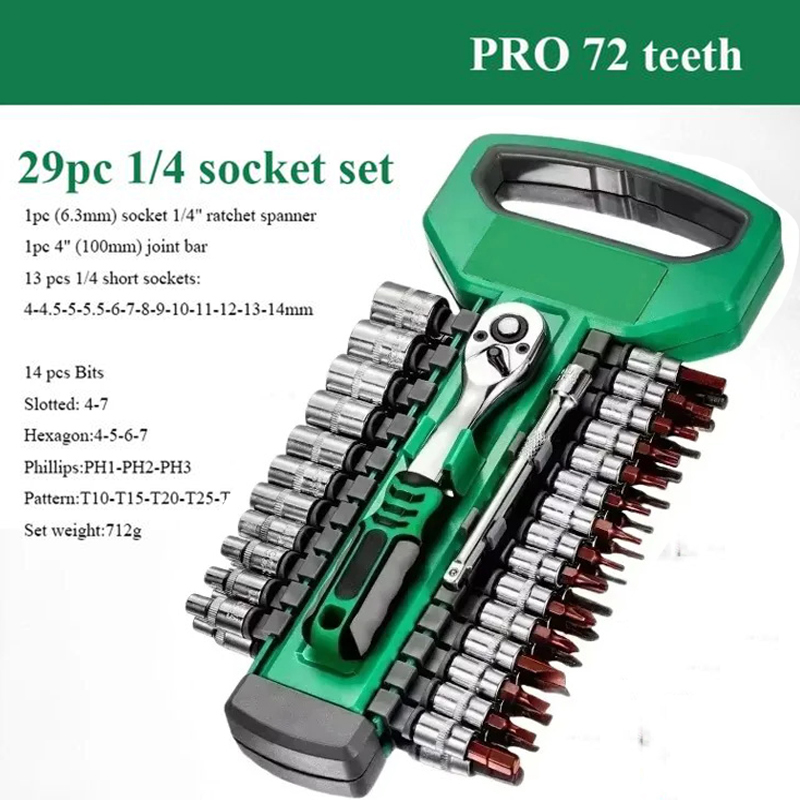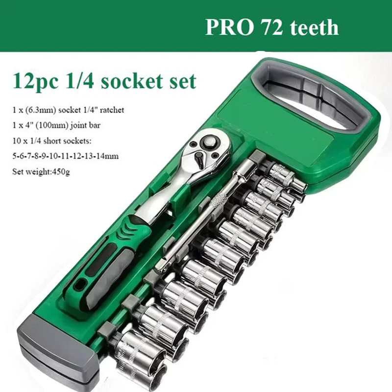 Key Set with Ratchet Handle, 1/4", 3/8" Ratchet Repair Tools, Auto Repair Manual Tools, 72 Teeth Ratchet Wrench