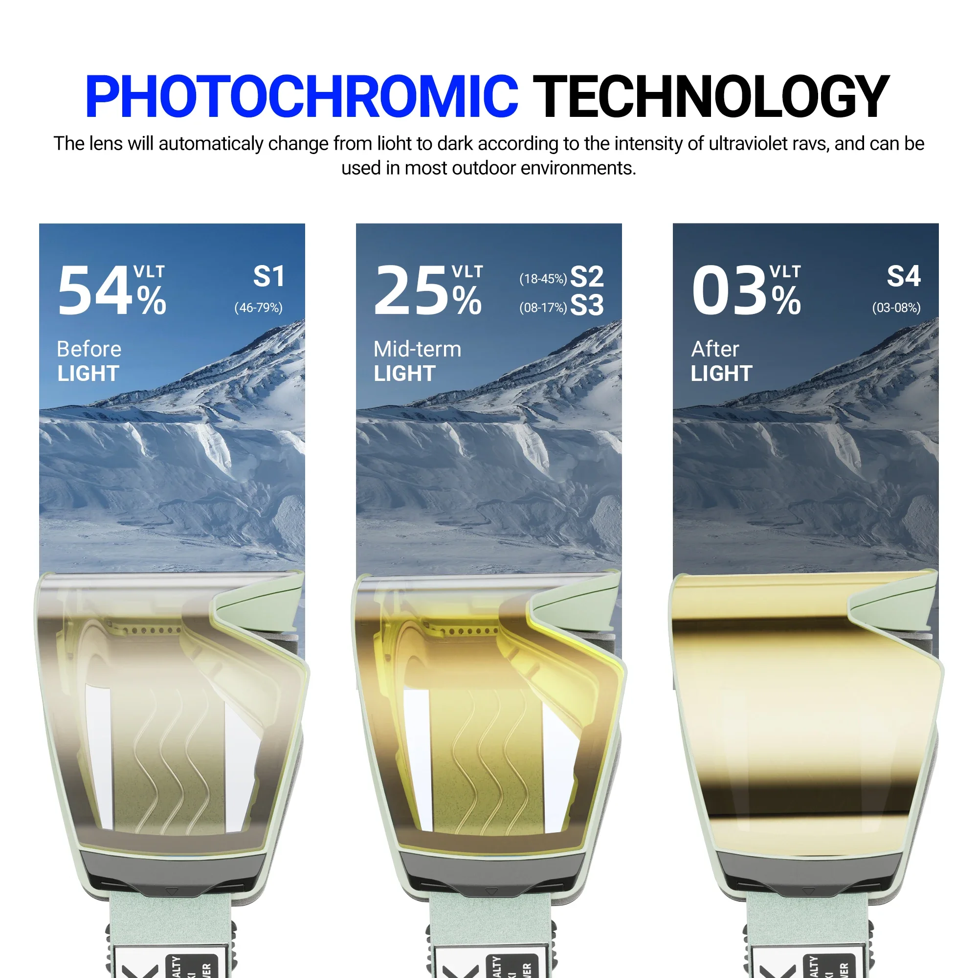 KAPVOE Hot Outdoor Photochromic Ski Goggles Winter Snow Sports for Unisex Snow Glasses UV400 Anti-fog Magnetic Snowboard Glasses