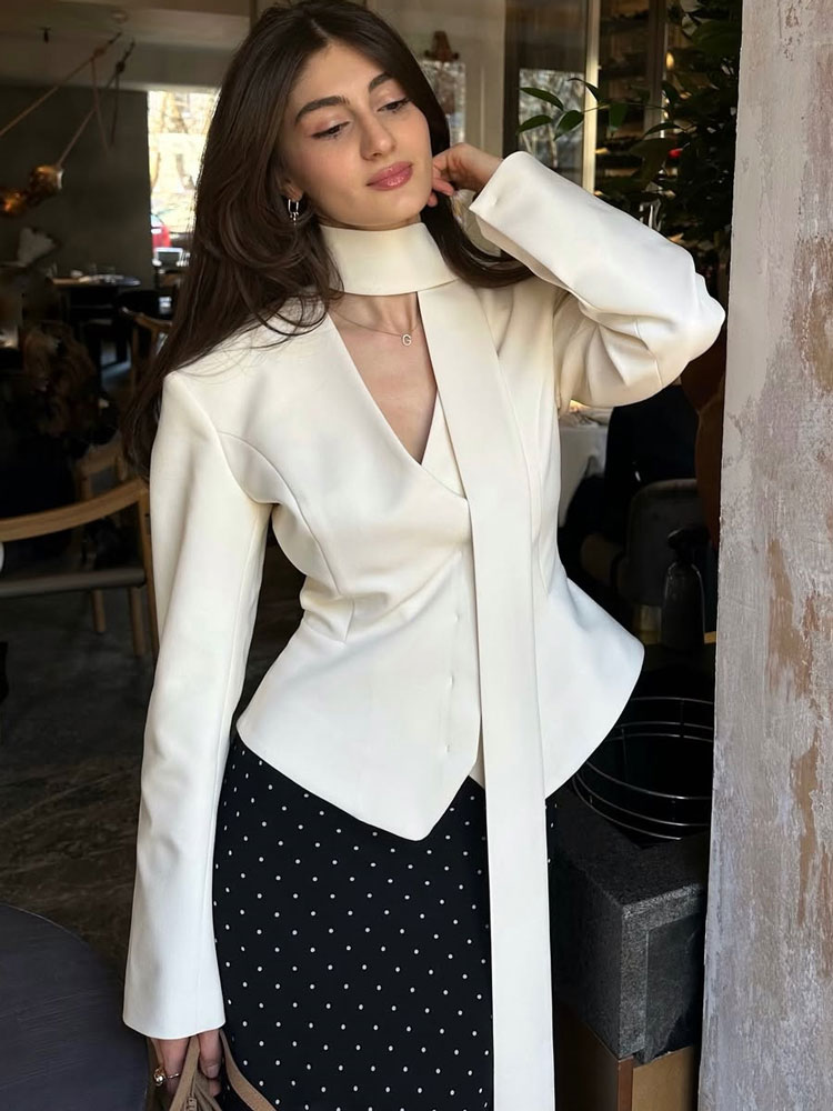 Tossy 3 Piece-Set Female Suit Mini Skirt Elegant Striped Commute Patchwork Fashion Luxury V-Neck Party Looks For Women Suit Sets
