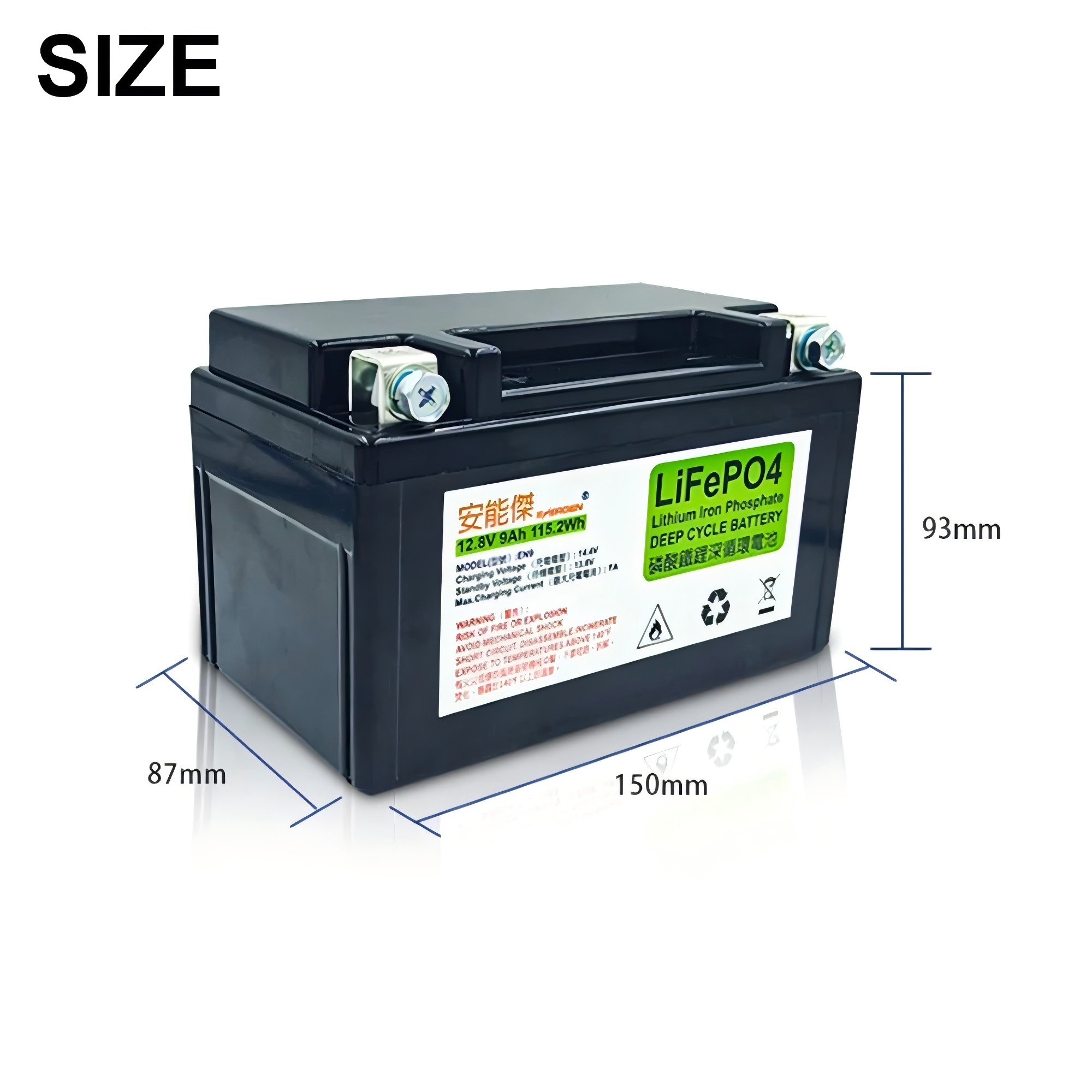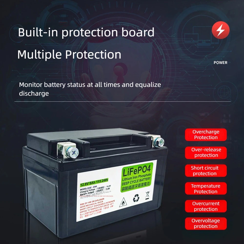 12.8V 9Ah Motorcycle LiFePO4 Battery CCA 300A Motorcycle Motor Starter Battery BMS 12V Lithium Phosphate Scooter Engine Battery