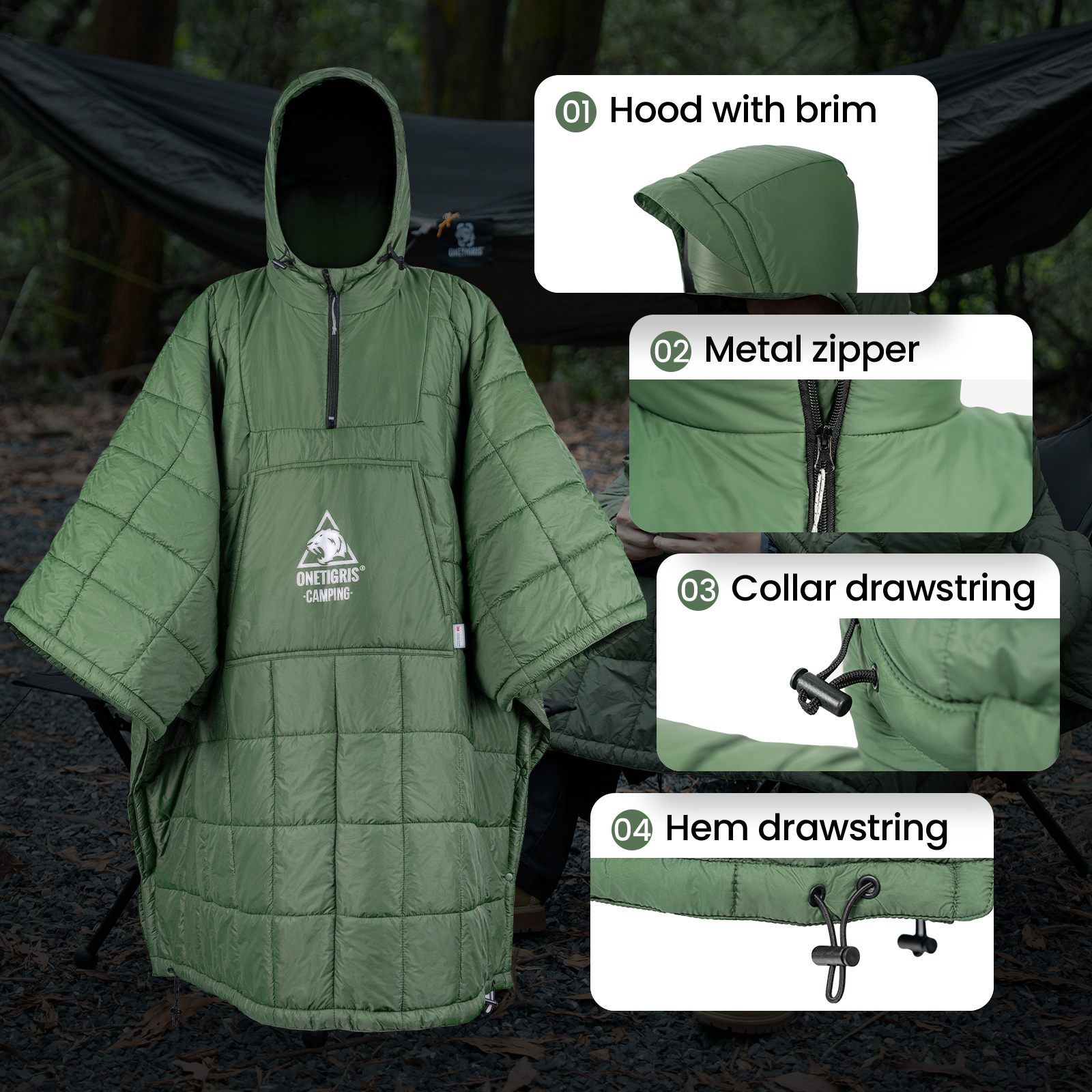 OneTigris Hooded Tactical Poncho Camping Blanket Wearable Sleeping Bag for Camping Hunt Ultralight Water-Resistant Warm Blanket