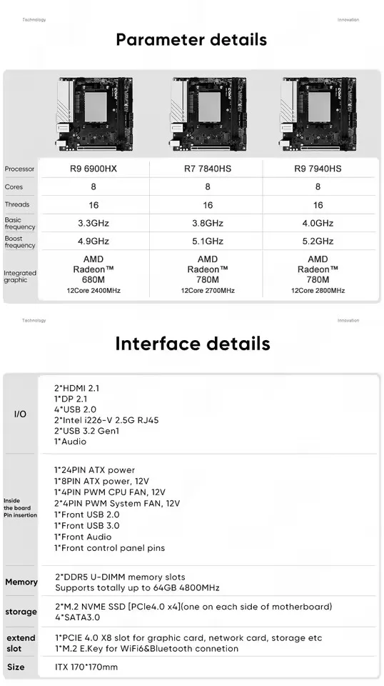 N17 NAS Gaming Mainboard AMD Ryzen 9 8945HS 7940HS R7 8745HS 7840HS Firewall Motherboard 4*SATA 2*NVMe PCIEx8 2*2.5G LAN