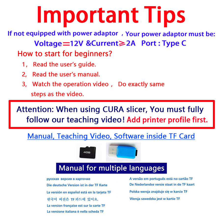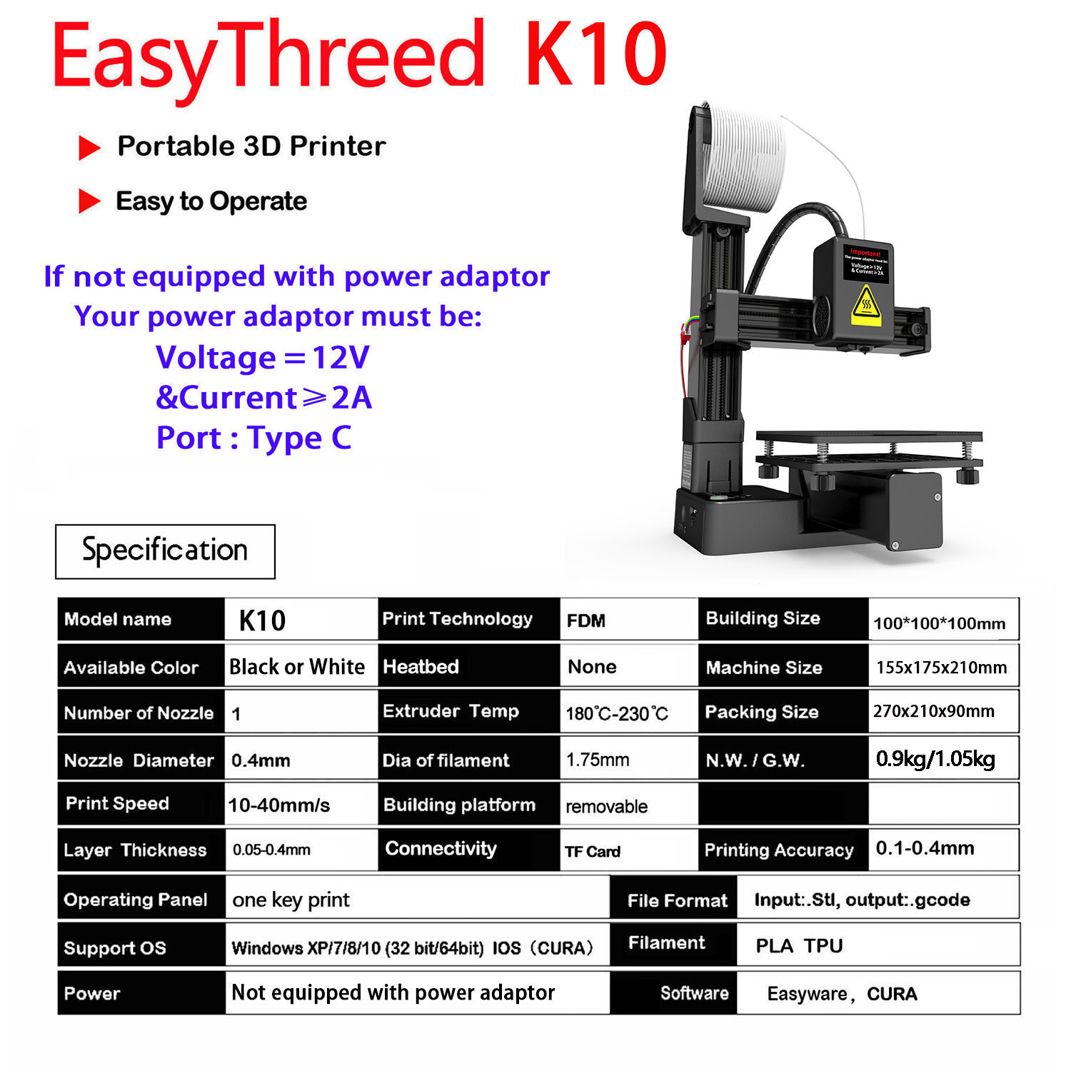 EasyThreed 3D Printer Entry Level Compatible with PLA TPU 1.75mm Filament include Power Adaptor.