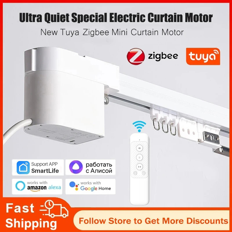 Tuya Zigbee Mini Smart Curtain Motor Electric Curtain Automatic System Rail Rod Support Alexa Alice Google Assistant Smartlife