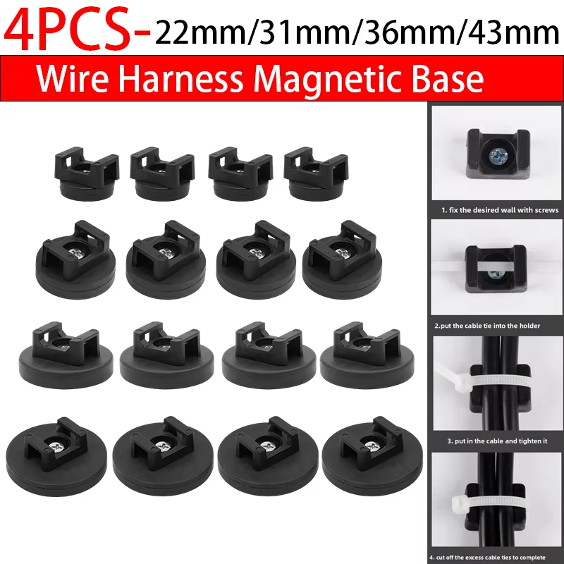 4pcs Strong Rubber Magnet base Fixed Cable Tie Holder Saddle Shaped With 4pcs Cable Ties Clips Cable Buckles Pipe Fitting Holder