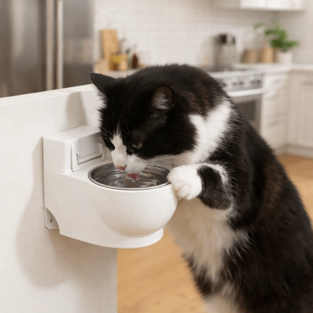 Wall-Mounted Toilet Shaped Cat Water Dispenser Simulation Closestool Stainless Steel Dog Drinking Bowl With Lid Split Design