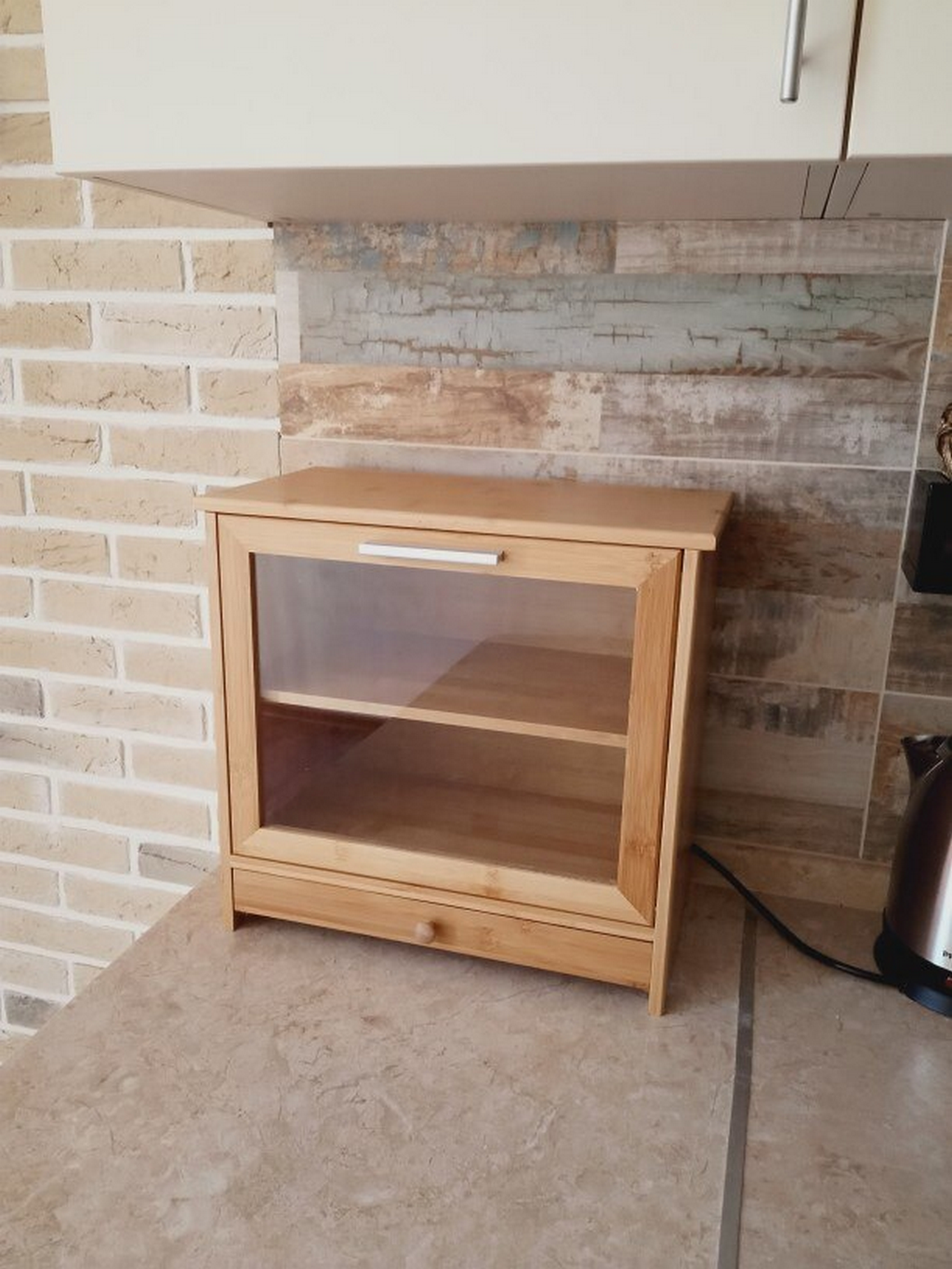 Дворівнева бамбукова хлібниця з прихованою обробної дошкою і ящиком для зберігання ножа
