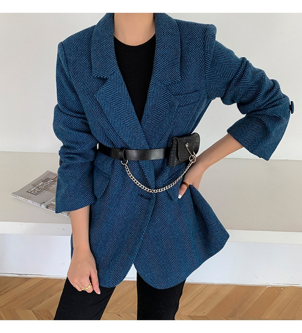 New Woolen Coat Women Elegant Thick Blue Suit Blazer Jacket 2023 Autumn Winter Office Lady Outwear Female Fashion
