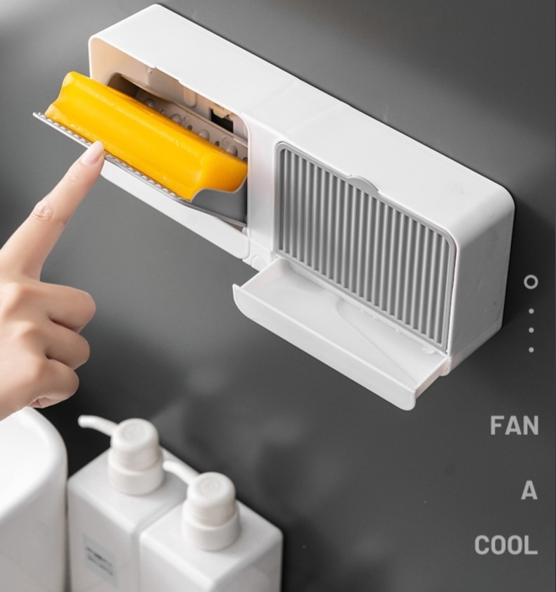 DALUOBO Creative Wall Mounted Soap Box With Lid Double Grids Soap Draining Rack Bathroom Soap Holder