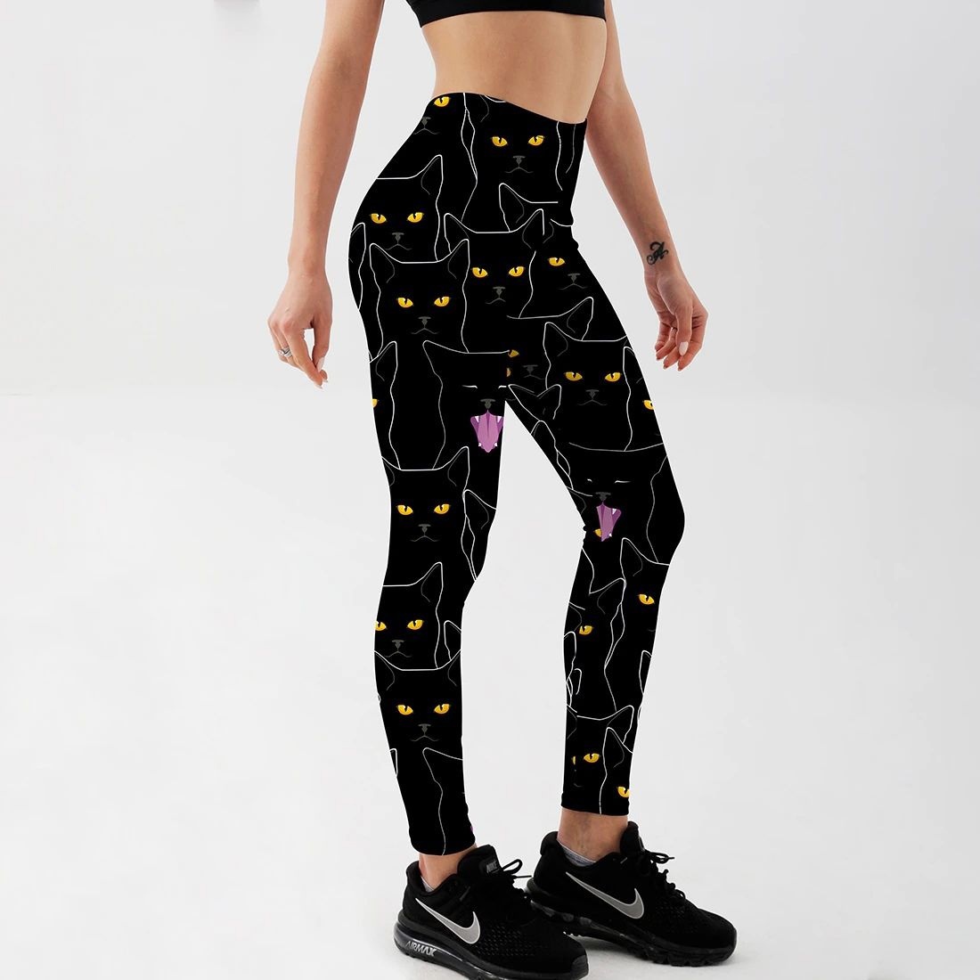 Qickitout Summer Style Fitness Women Leggings Black Cute Cats Printed Leggings Slim Workout Leggings Ankel Length Pants S-4XL