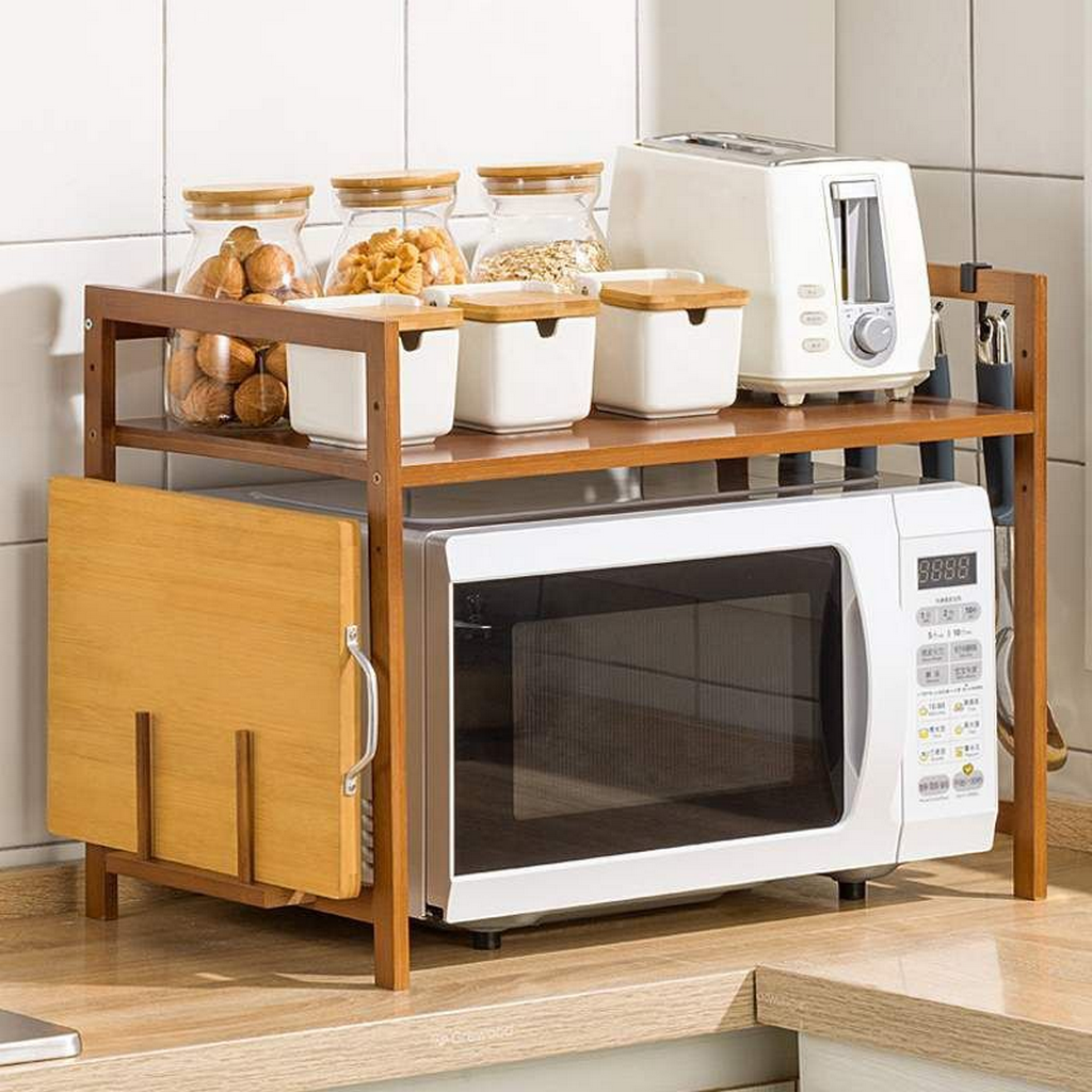 1/2-Tier Bamboo Microwave Shelf Adjustable Height Rack Kitchen Shelf Spice Organizer Kitchen Storage Rack Kitchenware Holder