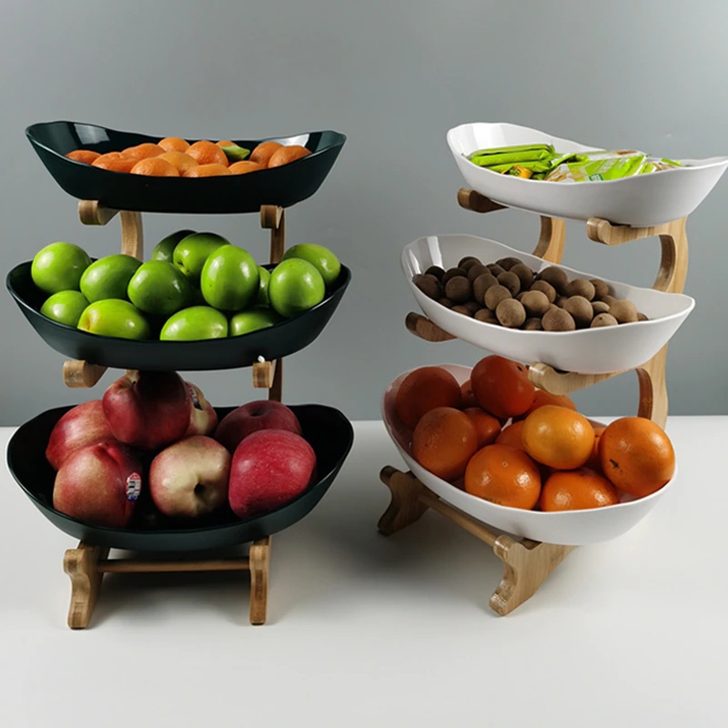 2/3 Tiers Fruit Plate with Wood Holder Snacks Candy Serving Plate Bowl Kitchen Organizer Rack Party Food Serving Display Tray