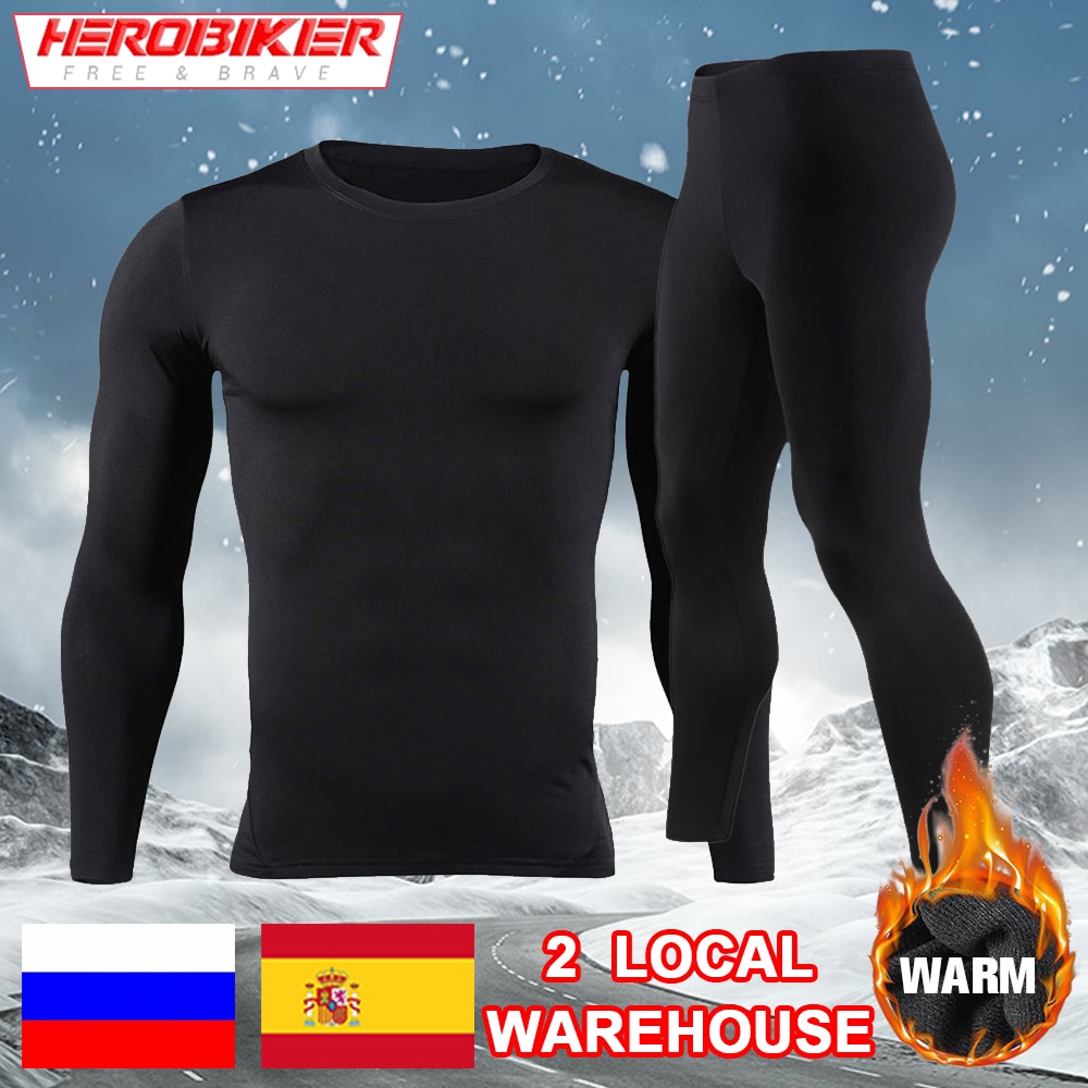 HEROBIKER Men Fleece Lined Thermal Underwear Set Motorcycle Skiing Base Layer Winter Warm Long Johns Shirts & Tops Bottom Suit
