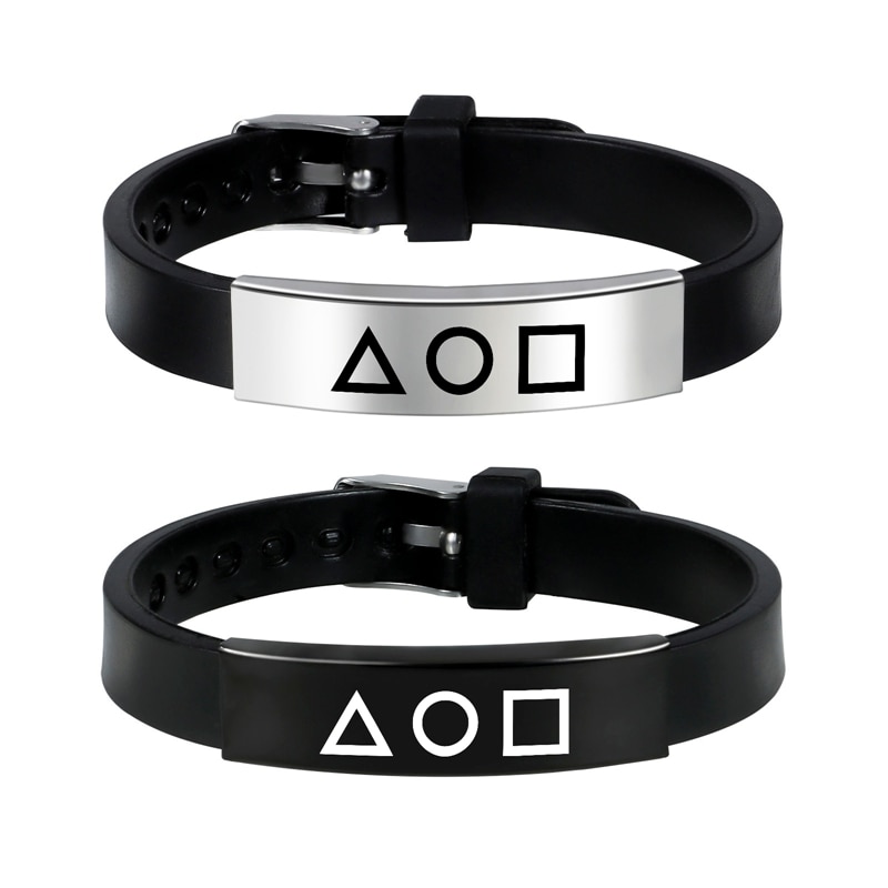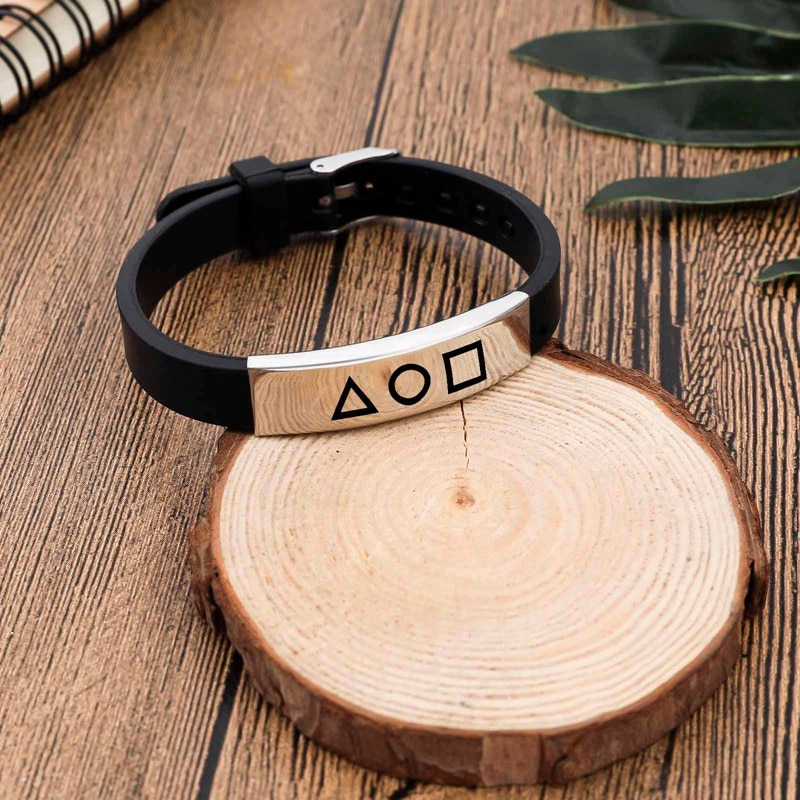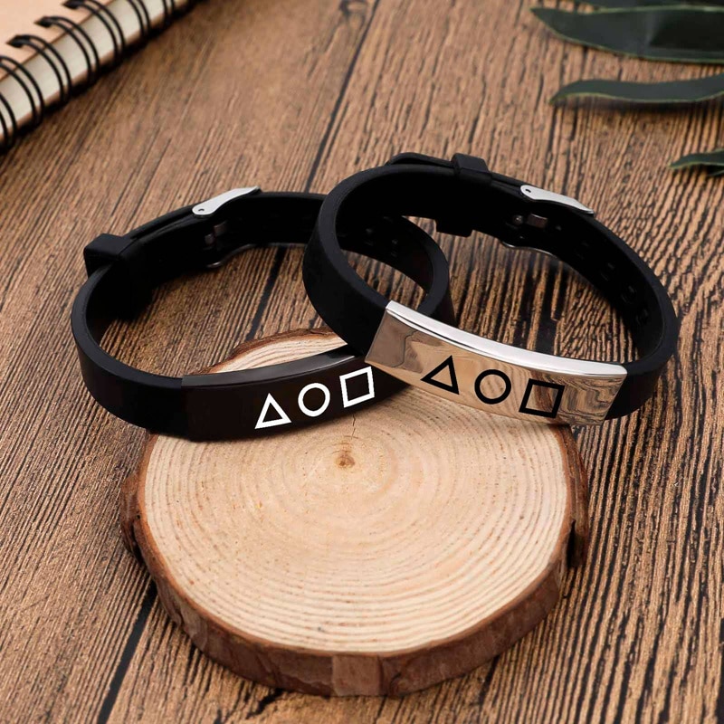 Korea Fashion Squid Game Black Silicone Couple Bracelet Stainless Steel Bracelets Gift Jewelry For Women And Men Fans Collection