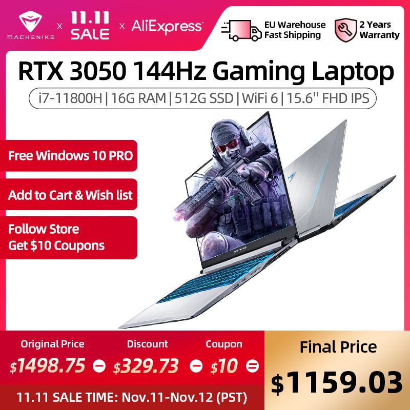 Machenike T58 RTX 3050 Gaming Laptop i7 11800H 144Hz Laptops16G 512G SSD 15.6'' WiFi 6 Backlit Keyboard Notebook Windows 10