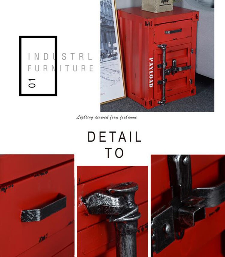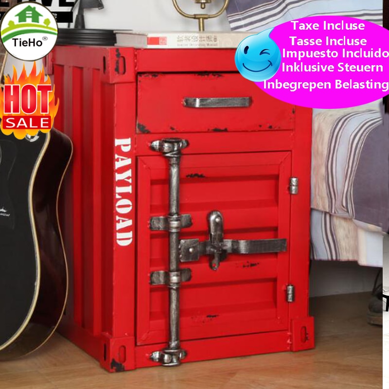 Retro Iron Bedside Table Bedroom Nightstand Cabinet Storage Box Locker Home Hotel Bar Furniture American Industrial Style