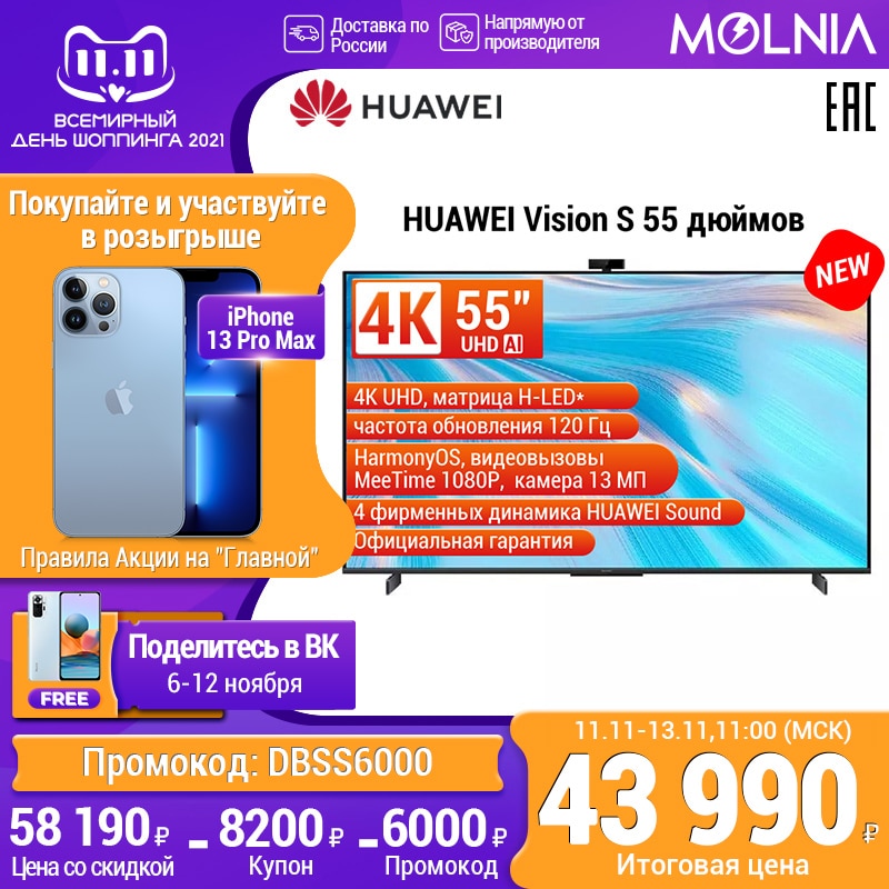 TV 55 "Huawei Vision S 55 4K hormonyos WiFi 2.4g Bluetooth 5.0 TV 55inch 4K TV UHD Smart TV HDR 55inchtv
