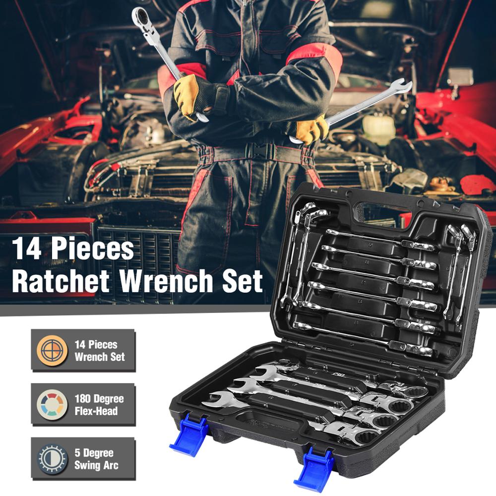 PROSTORMER 14PCS Keys Set Multitool Wrench Ratchet Spanners Set Hand Tool Wrench Set Universal Wrench Tool Car Repair Tools