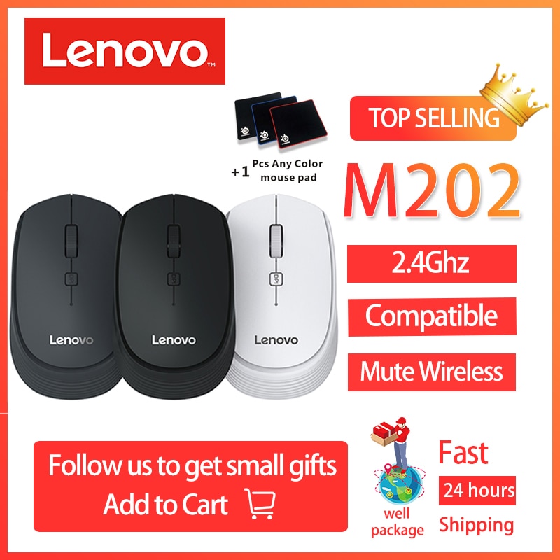 Lenovo M202 Wireless Mini Computer Mouse USB Connection 2.4GHz Wireless Mice Notebook Desktop1600dpi Mute Mous