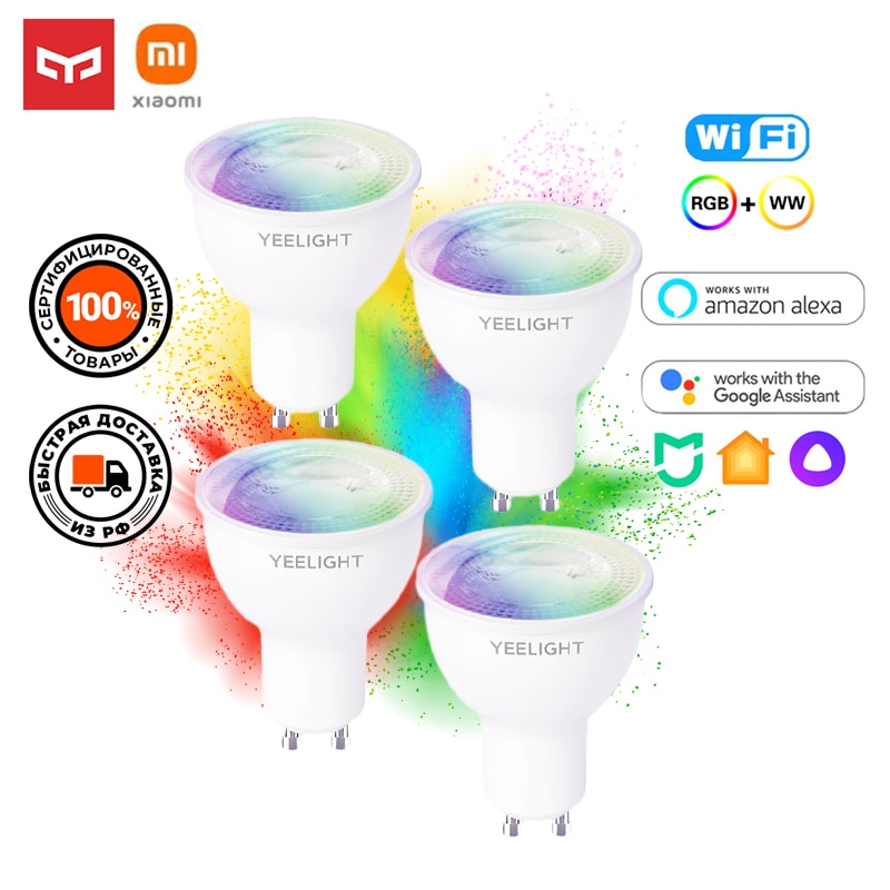 Smart Bulb Yeelight GU10 smart bulb multicolor packing 4 PCs Lamps and Lighting light bulbs tubes LED Leds For home