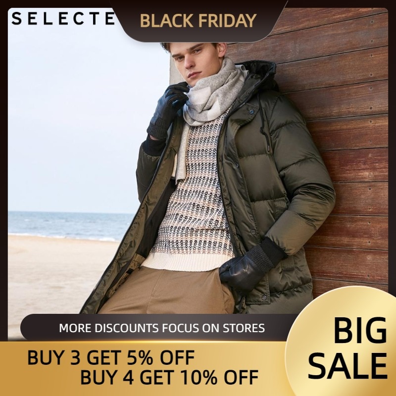 SELECTED Men's Winter Parka Coat Mid-length Clothes Hooded Duck Down Jacket S|419412581