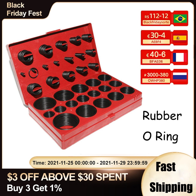 382pcs Rubber Strip Car O Ring Rubber Seal Assortment Set Kit Sealing Strips Garage Plumbing O Ring for Car Workshops Garages