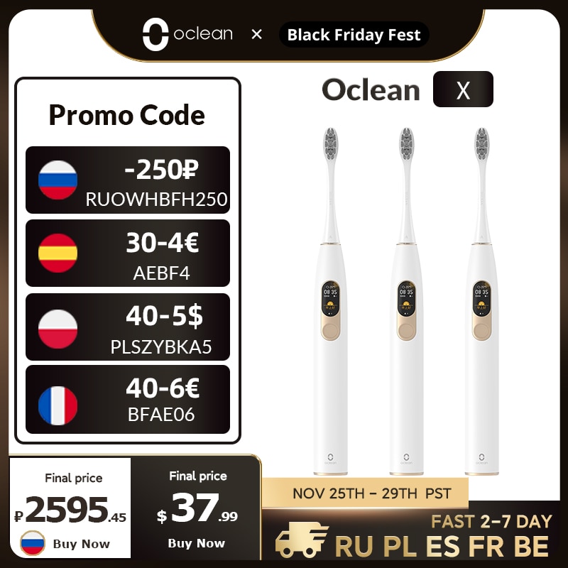 Global Version Oclean X Sonic Electric Toothbrush Color LCD Touch Screen IPX7 4 Brush Modes Fast Charge 30 days Tooth Brush