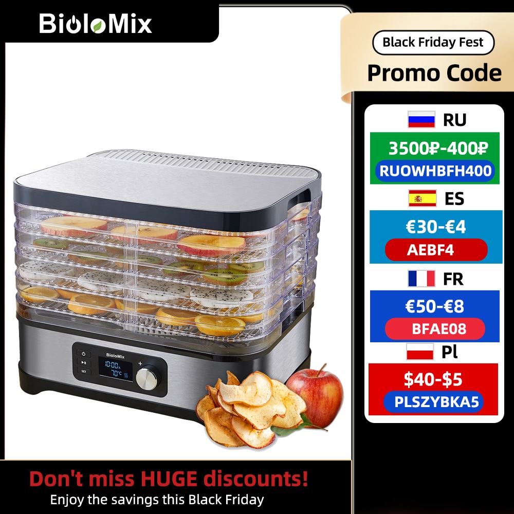 BioloMix BPA FREE 5 Trays Food Dryer Dehydrator with Digital Timer and Temperature Control for Fruit Vegetable Meat Beef Jerky