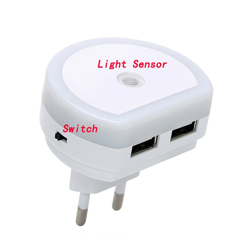 LED Night Lights With Dual USB Port Charger Sensor Light Control Bedroom Wall Lamp Home Emergency Lights EU/US Plug Socket Lamps