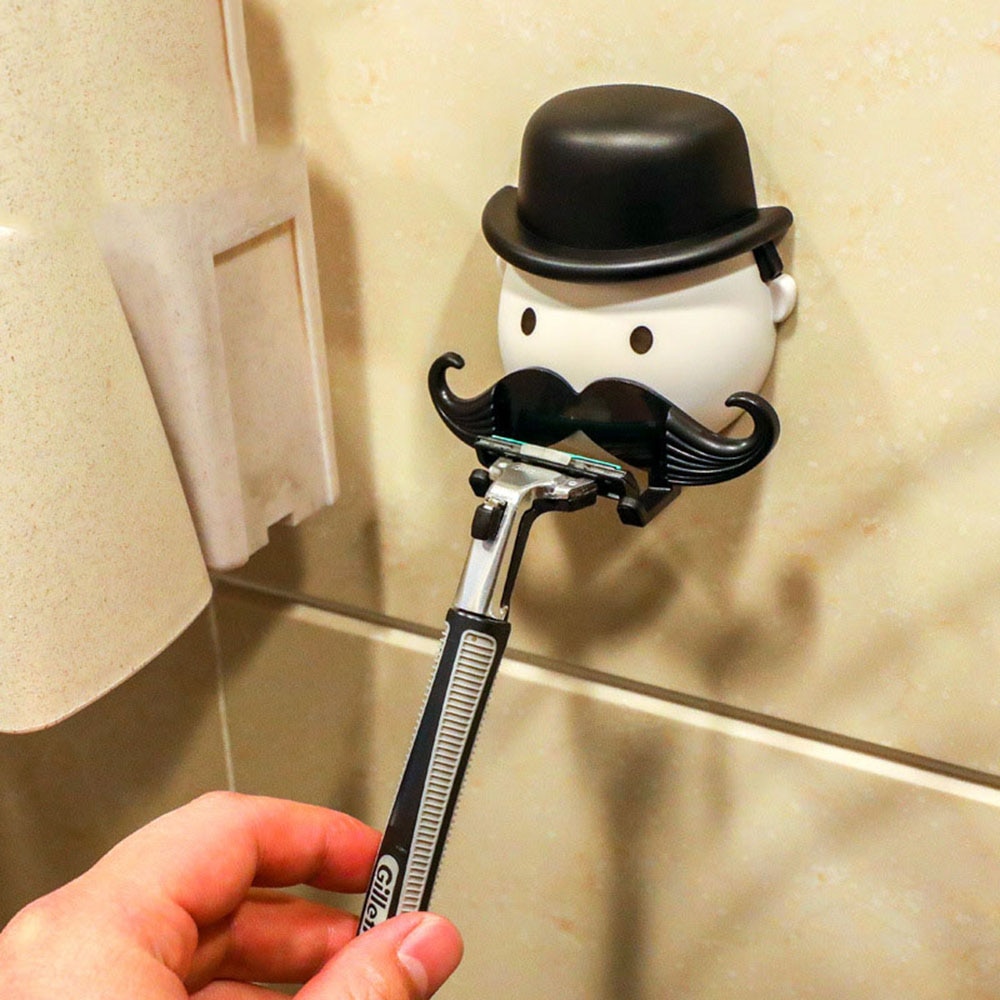 Men Beard Manual Razor Holder Shelf Seat Stand Hang Bathroom Razor Hook Hanger Sucker Wall Mouted Shaver Plastic Storage Rack