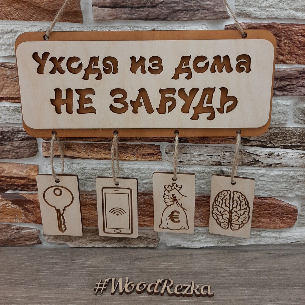 Plate of wood "leaving the house do not forget the brains of the phone keys" , Wooden decor for the house, Wall decor,
