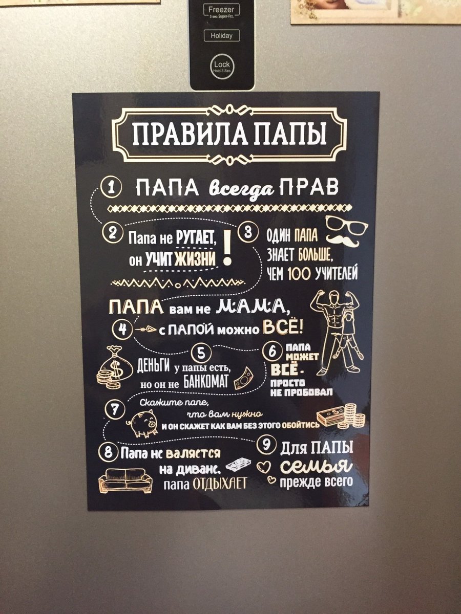 Magnetic panel-motivator on the refrigerator "rules of the Pope", gift to dad, man. Interior decoration.