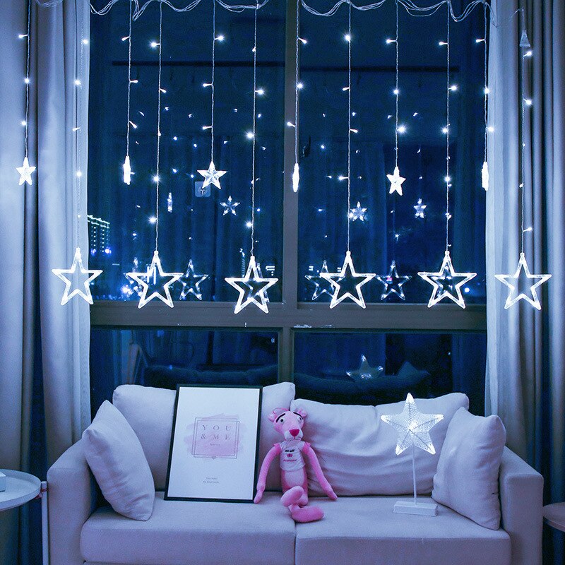 Led Garland stars. 12 bright New Year's stars. Garland on the Christmas tree star. New year's stars for spruce. Christmas decoration