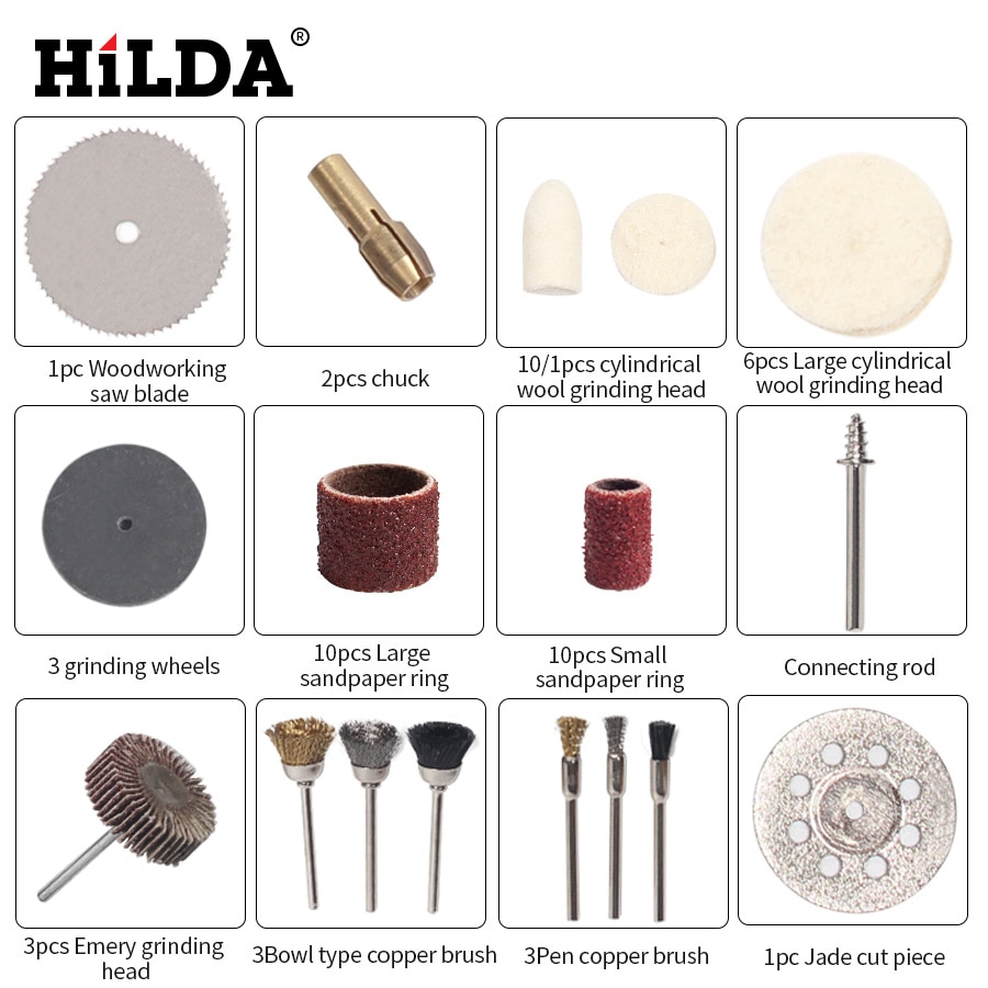 HILDA Rotary Tool Accessories for Easy Cutting Grinding Sanding Carving and Polishing Tool Combination For Hilda Dremel