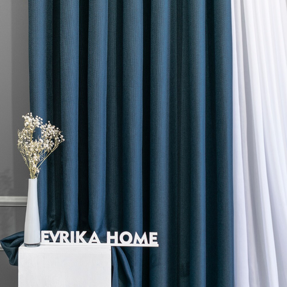 Curtains in the room, bedroom, living room, hall, kitchen, Horn on the curtain tape, white, gray, blue, turquoise, jeans,
