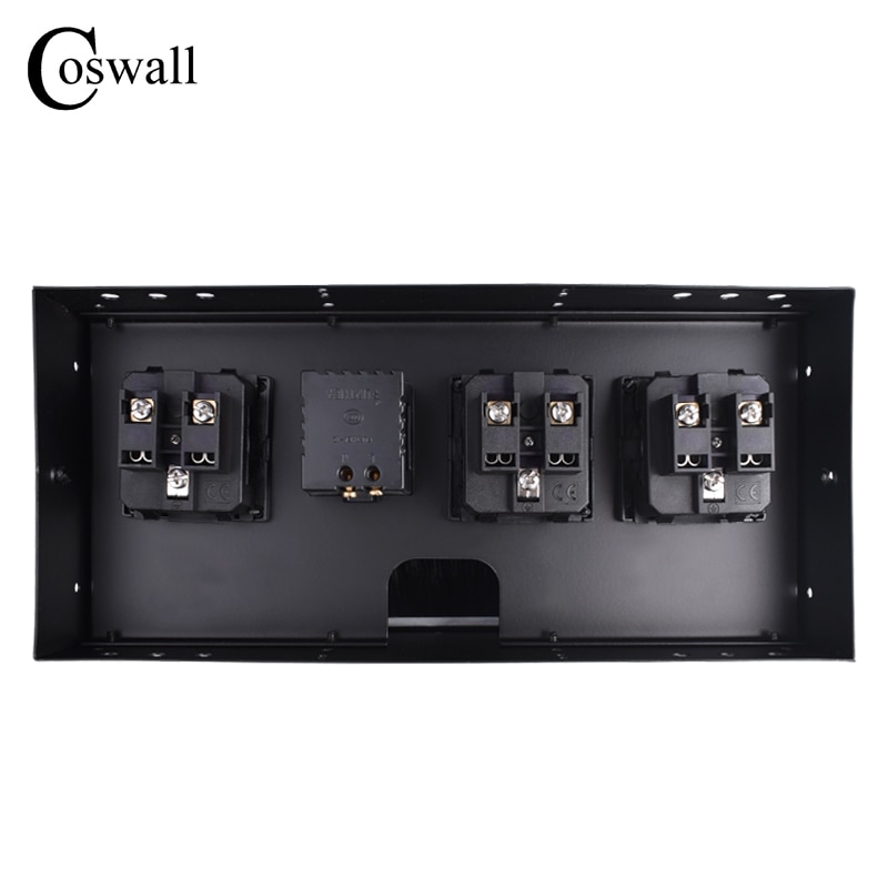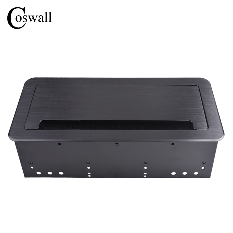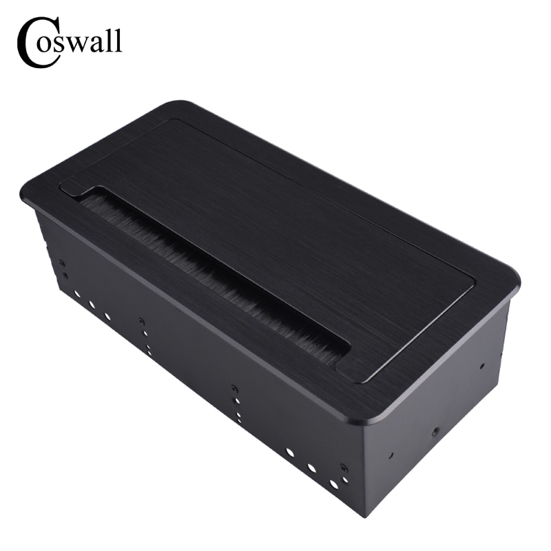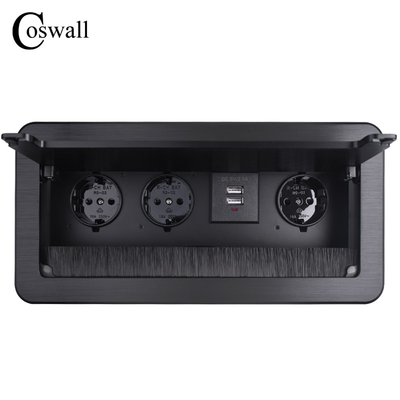 COSWALL Black Aluminum Metal Body 3 EU Outlet Table Socket 2 USB Charging Port With Dustproof Brush Clamshell Cover Soft Close