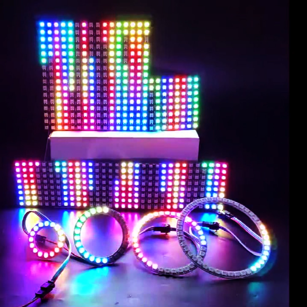 DC5V WS2812B Led Digital Panel Matrix Flexible Screen 8*8 16*16 8*32 5050 RGB WS2812 Ring Individually Addressable Pixels