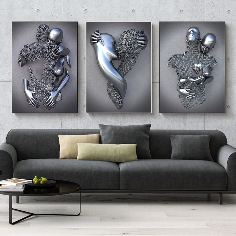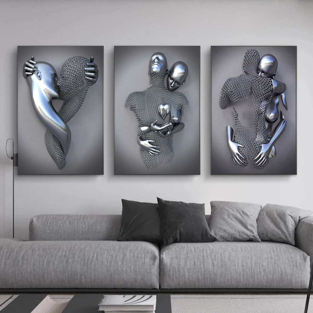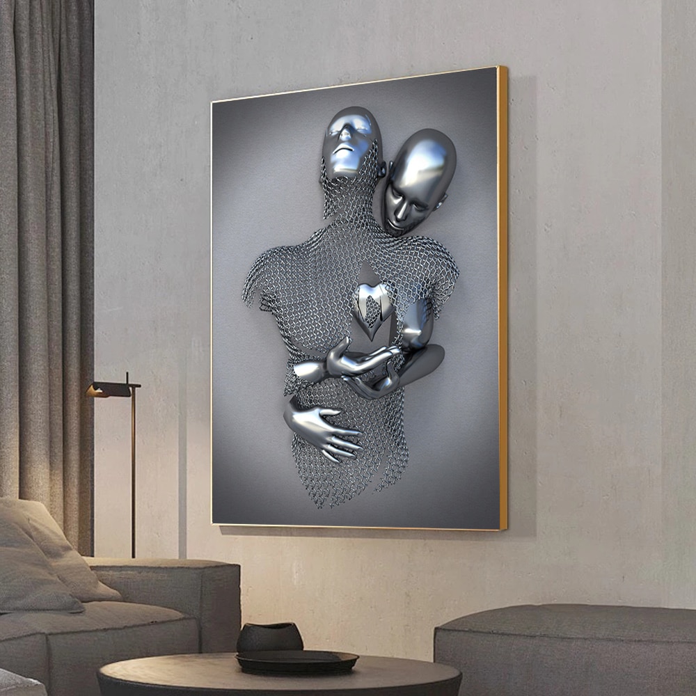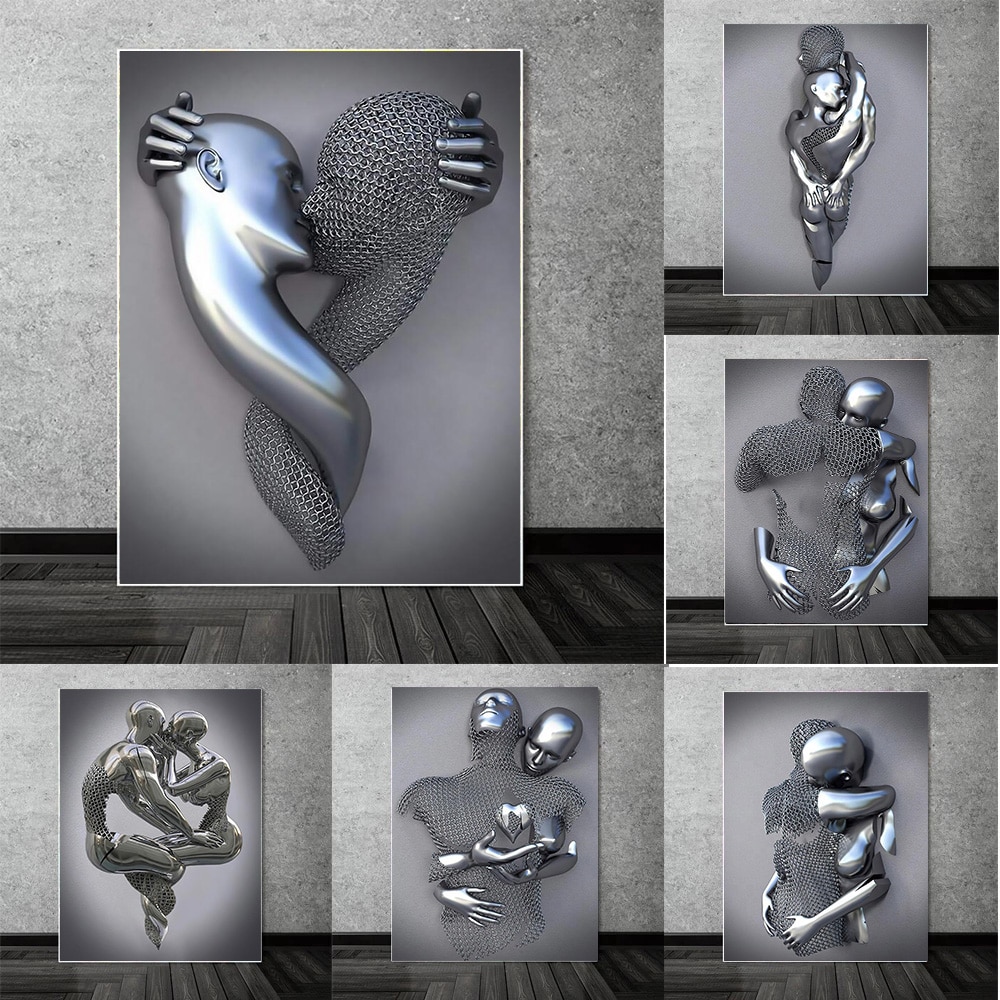 Metal Figure Statue Art Canvas Painting Posters and Prints Modern Lovers Sculpture Wall Pictures for Living Room Home Decoration