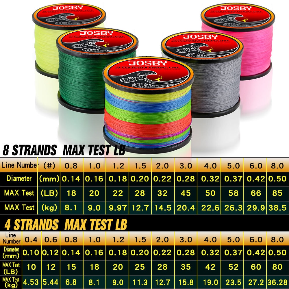 JOSBY 8 Braided Fishing Line 1000M Multifilament PE 4 Strands Fishing Cord 10LB-85LB Strong Japan Technology Orange 9 colors