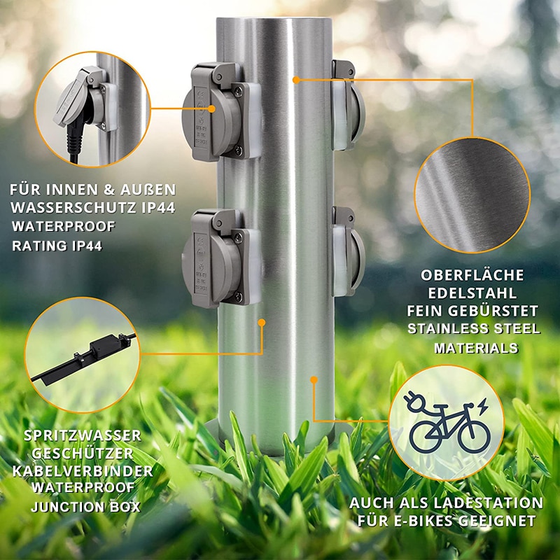Outdoor Garden Socket 4-Way EU Sockets Waterproof Energy Column Multi-socket Spike for Garden décor Lawn Mower Electrical outlet